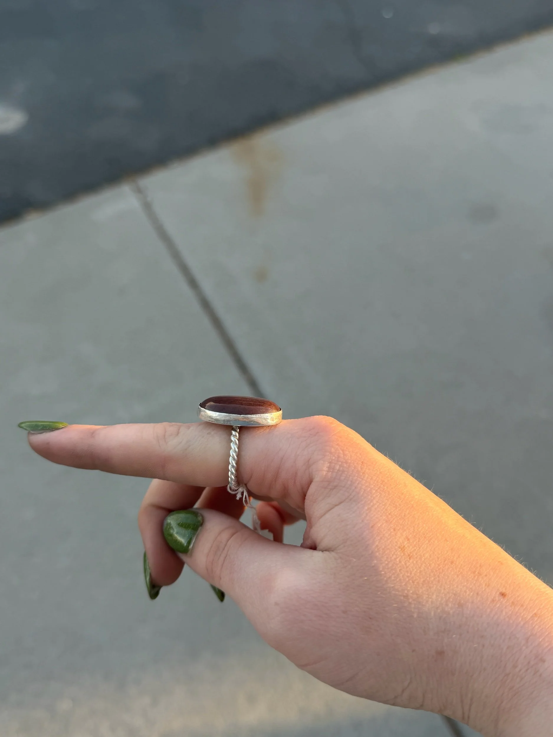 SHOP › Brown Stone Ring Size 7/8 Brown Stone Ring Size 7/8 $55.00 size 7/8 925 Sterling SilverStraight bezel / twist band size 7/8 925 Sterling SilverStraight bezel / twist band Add To Cart Added!